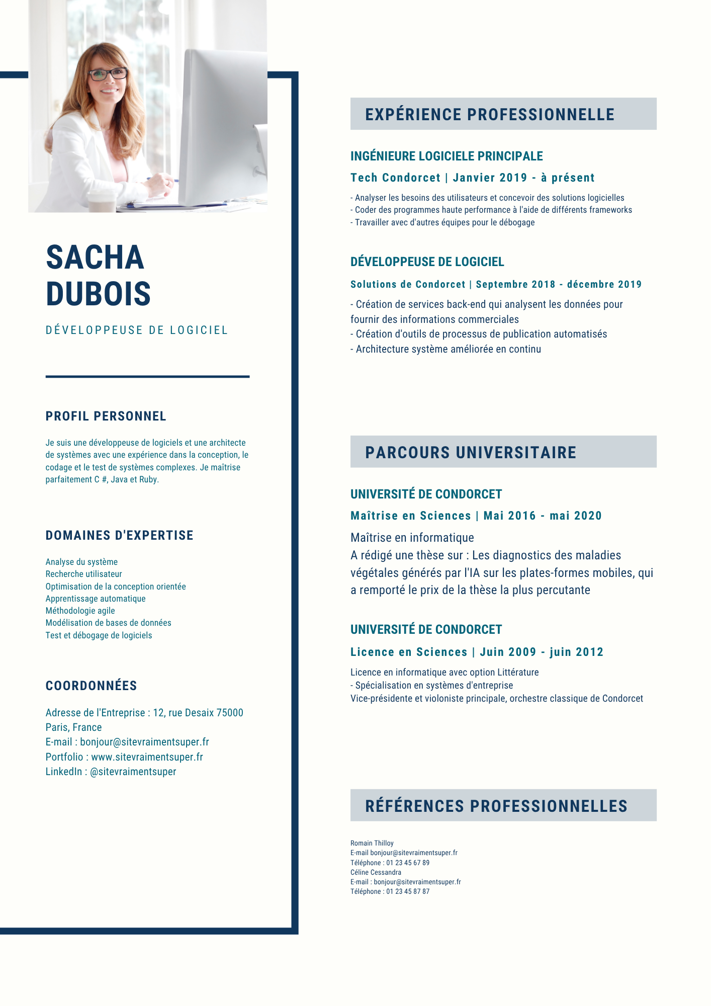 •L’intégration de vos informations, compétences, expériences et photo